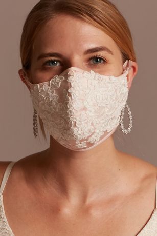 Satin Fashion Face Mask with Floral Lace Applique David Source : www.davidsbridal.com